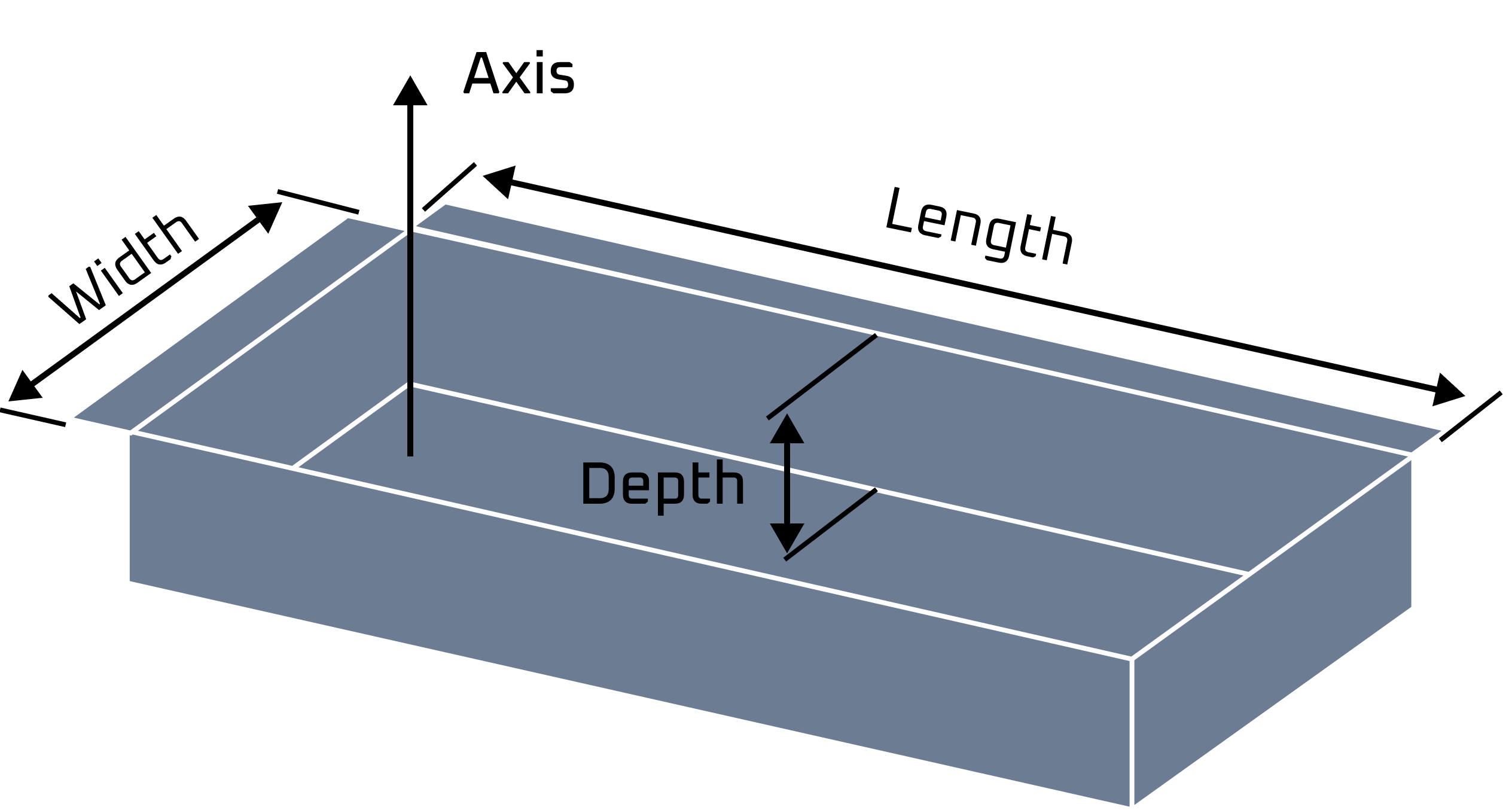 Pocket have the following basic parameters: width in mm, length in mm, depth in mm and axis.