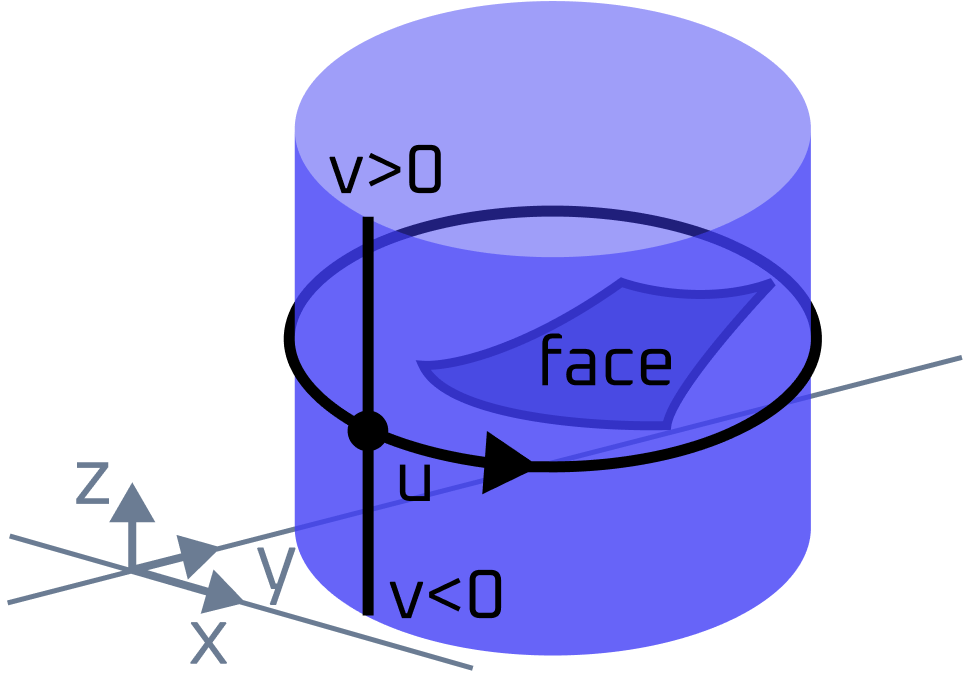 Face resides on a geometrical surface (returned by Surface()) and is bounded by one or several wires. A face must always have at least one explicit outer wire even if it corresponds to a naturally bounded surface (e.g. torus or a sphere).