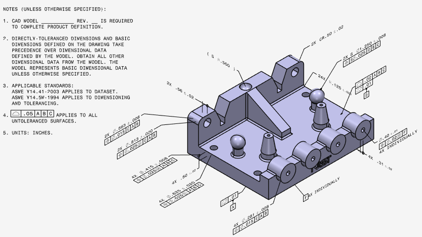 Product and Manufacturing Information (PMI) is used in 3D CAD and collaborative product development systems to convey information about the design of a product's components for manufacturing. Specifically, PMI includes information such as geometric dimensioning and tolerancing (GD&T), 3D annotations (text), and material specifications.