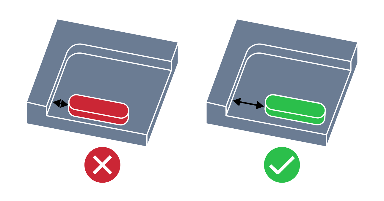 | Narrow Region in Pocket | In CNC machining milling design, a narrow region in a pocket refers to a small or tight area within the pocket that is difficult for the cutting tool to access. Narrow region can pose challenges for the cutting tool in terms of limited visibility, reduced cutting speed, increased tool wear, and potential tool breakage. |