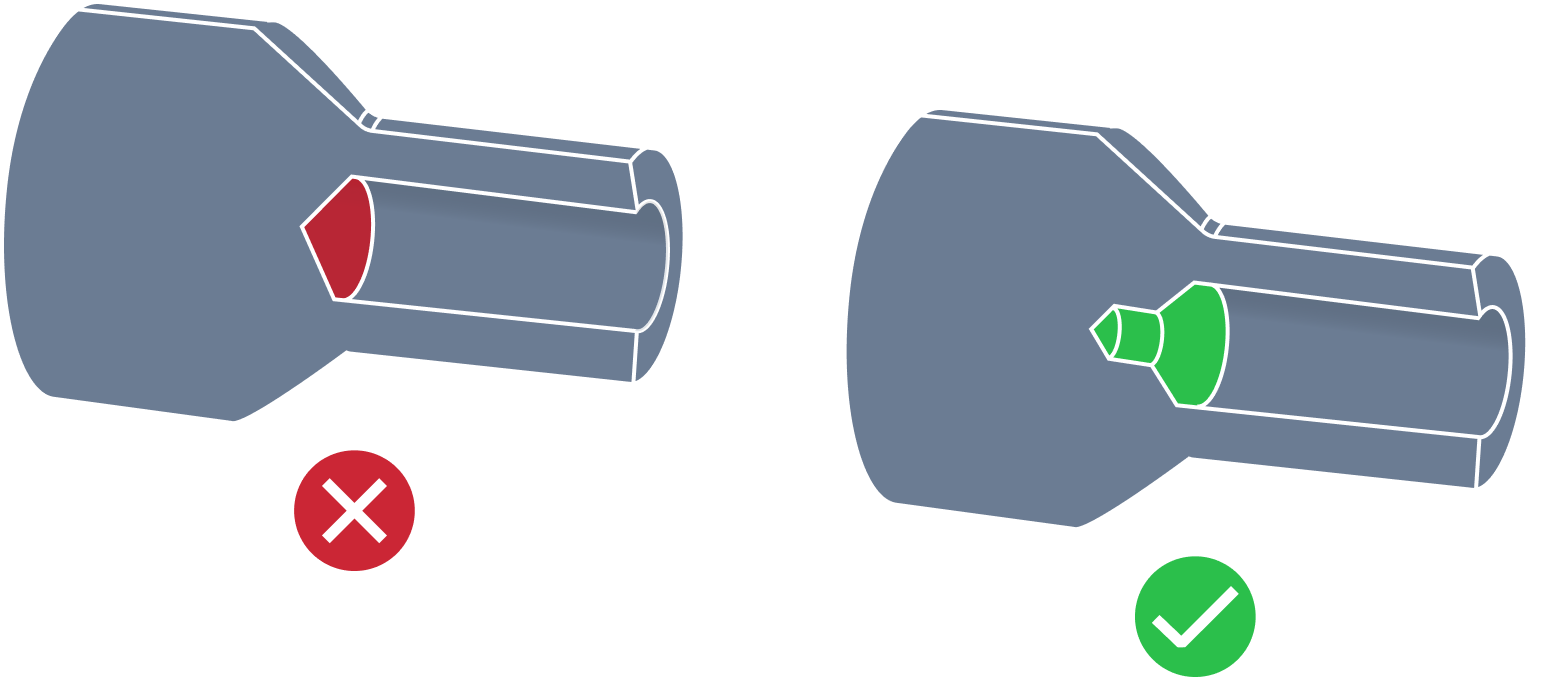 | Intersecting Cavity Hole | In CNC machining, the issue of holes intersecting cavities can arise when designing a part that requires both through-holes and closed cavities. If the cavity intersects with the hole, it can create a number of issues during the drilling process. The drill bit may become trapped in the cavity, or the drill may produce an irregularly-shaped hole that does not pass cleanly through the part. In extreme cases, the drill bit may even break off inside the part, causing damage and requiring costly repairs. It's better to avoid drilling a hole through the cavity or at least maximize the drilled material percent, so that the center line of a hole will be outside the cavity. |