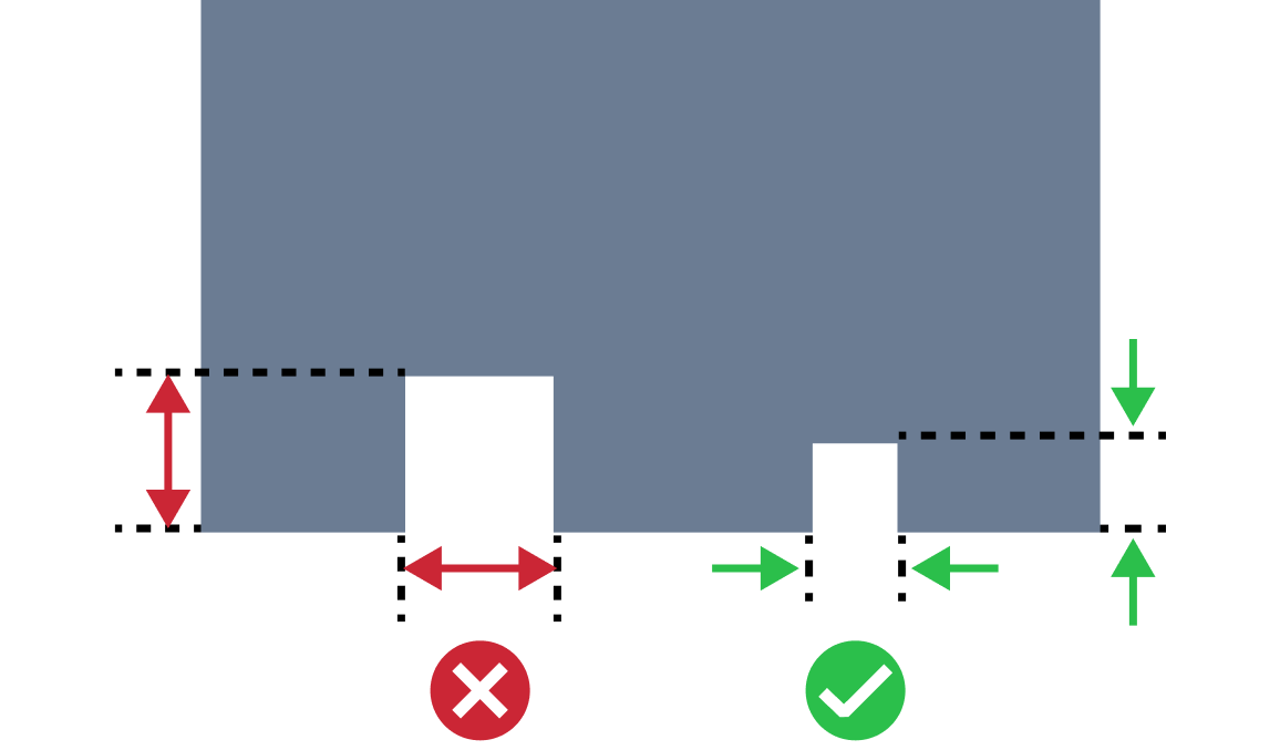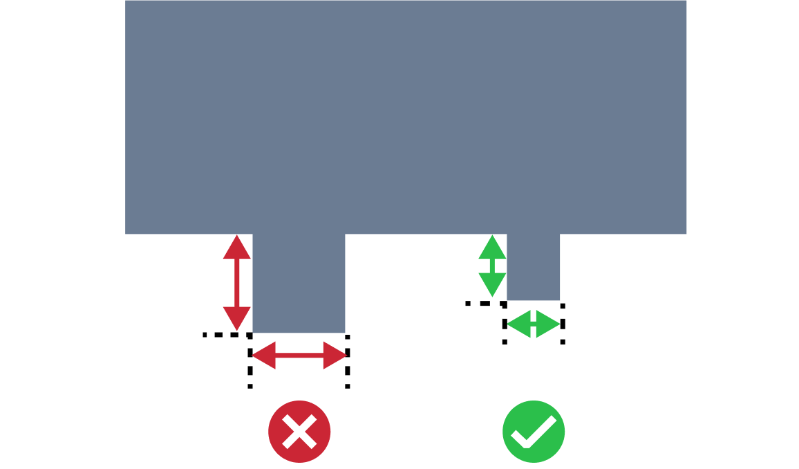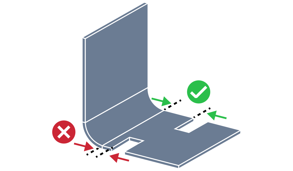 | Small Distance Between Notches | When the notches are placed too close together, it can weaken the overall structure of the sheet metal. This is because the material between the notches is relatively thin and therefore more susceptible to bending or breaking. |