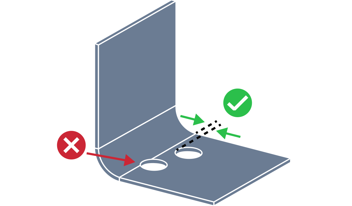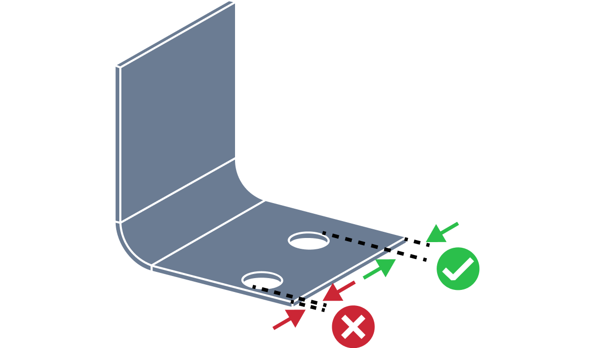 | Small Distance Between Hole And Cutout | When a hole is drilled too close to the edge of a bend, it can result in a weakened area, making the sheet metal more prone to cracking or breaking. This can be especially problematic if the sheet metal is intended to support weight or pressure in its final use. |