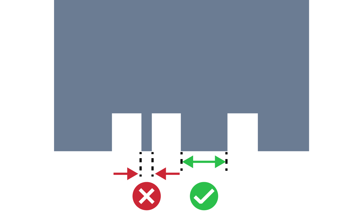 | Small Distance Between Tabs | When the tabs are too close together, they may interfere with each other and prevent the parts from properly fitting together. Additionally, if there is not enough clearance between the tabs, it may be difficult or impossible to bend or form the metal during fabrication. This can cause manufacturing delays or may even require design changes to be made. |