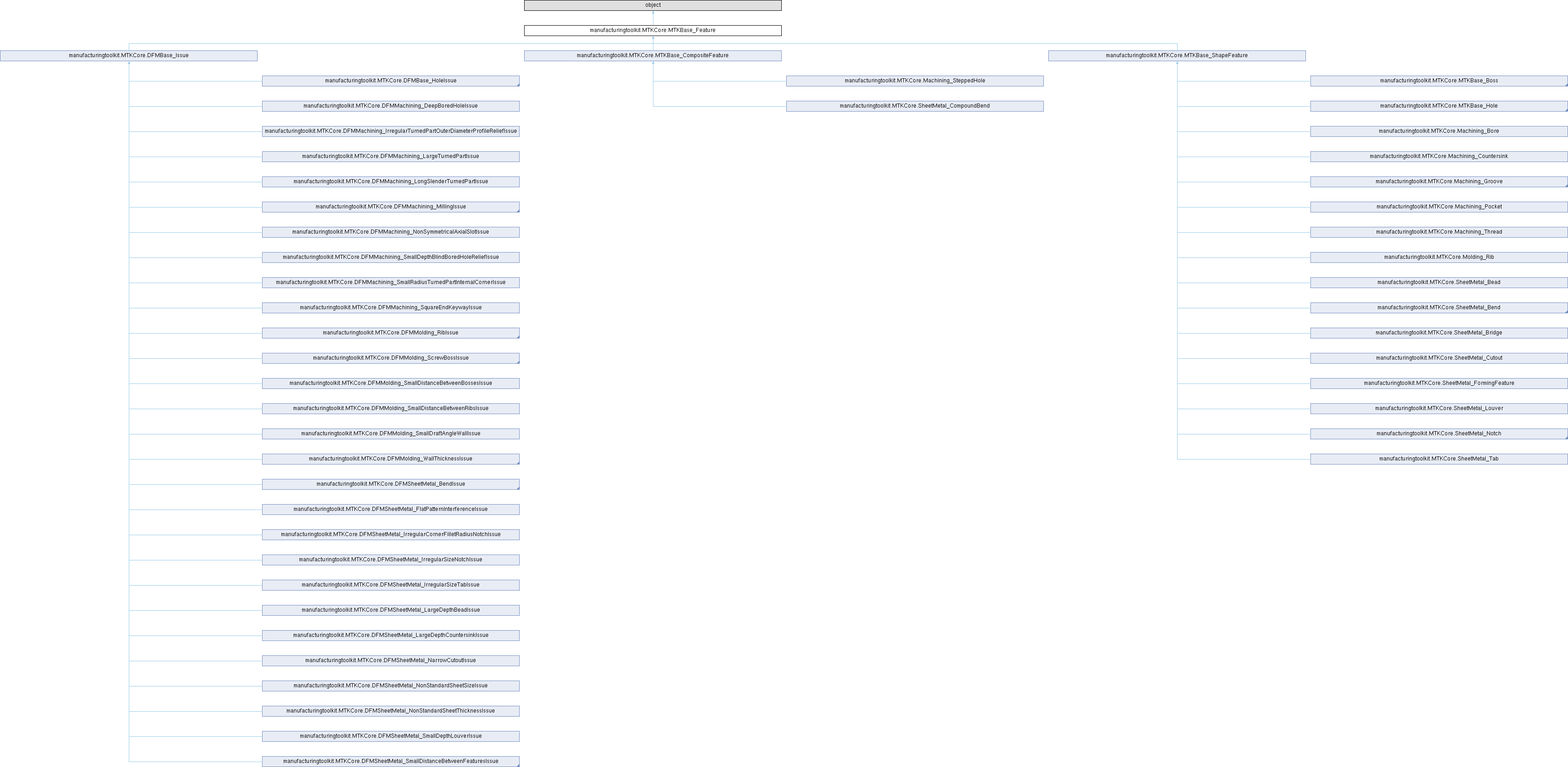 Reimplemented in manufacturingtoolkit.MTKCore.DFMBase_HoleIssue, manufacturingtoolkit.MTKCore.DFMBase_Issue, manufacturingtoolkit.MTKCore.DFMMachining_DeepBoredHoleIssue, manufacturingtoolkit.MTKCore.DFMMachining_DeepHoleIssue, manufacturingtoolkit.MTKCore.DFMMachining_DeepPocketIssue, manufacturingtoolkit.MTKCore.DFMMachining_DrillingIssue, manufacturingtoolkit.MTKCore.DFMMachining_FlatBottomHoleIssue, manufacturingtoolkit.MTKCore.DFMMachining_HighBossIssue, manufacturingtoolkit.MTKCore.DFMMachining_InconsistentRadiusMilledPartFloorFilletIssue, manufacturingtoolkit.MTKCore.DFMMachining_IntersectingCavityHoleIssue, manufacturingtoolkit.MTKCore.DFMMachining_IrregularTurnedPartOuterDiameterProfileReliefIssue, manufacturingtoolkit.MTKCore.DFMMachining_LargeDifferenceRegionsSizeInPocketIssue, manufacturingtoolkit.MTKCore.DFMMachining_LargeMilledPartIssue, manufacturingtoolkit.MTKCore.DFMMachining_LargeTurnedPartIssue, manufacturingtoolkit.MTKCore.DFMMachining_LongSlenderTurnedPartIssue, manufacturingtoolkit.MTKCore.DFMMachining_MilledPartExternalEdgeFilletIssue, manufacturingtoolkit.MTKCore.DFMMachining_MillingIssue, manufacturingtoolkit.MTKCore.DFMMachining_NarrowRegionInPocketIssue, manufacturingtoolkit.MTKCore.DFMMachining_NonPerpendicularHoleIssue, manufacturingtoolkit.MTKCore.DFMMachining_NonPerpendicularMilledPartShapeIssue, manufacturingtoolkit.MTKCore.DFMMachining_NonStandardDiameterHoleIssue, manufacturingtoolkit.MTKCore.DFMMachining_NonStandardDrillPointAngleBlindHoleIssue, manufacturingtoolkit.MTKCore.DFMMachining_NonStandardRadiusMilledPartFloorFilletIssue, manufacturingtoolkit.MTKCore.DFMMachining_NonSymmetricalAxialSlotIssue, manufacturingtoolkit.MTKCore.DFMMachining_PartialHoleIssue, manufacturingtoolkit.MTKCore.DFMMachining_SmallDepthBlindBoredHoleReliefIssue, manufacturingtoolkit.MTKCore.DFMMachining_SmallDiameterHoleIssue, manufacturingtoolkit.MTKCore.DFMMachining_SmallDistanceBetweenThreadedHoleAndEdgeIssue, manufacturingtoolkit.MTKCore.DFMMachining_SmallRadiusMilledPartInternalCornerIssue, manufacturingtoolkit.MTKCore.DFMMachining_SmallRadiusTurnedPartInternalCornerIssue, manufacturingtoolkit.MTKCore.DFMMachining_SmallWallThicknessIssue, manufacturingtoolkit.MTKCore.DFMMachining_SquareEndKeywayIssue, manufacturingtoolkit.MTKCore.DFMMachining_UndercutIssue, manufacturingtoolkit.MTKCore.DFMMolding_HighRibIssue, manufacturingtoolkit.MTKCore.DFMMolding_HighScrewBossIssue, manufacturingtoolkit.MTKCore.DFMMolding_IrregularCoreDepthScrewBossIssue, manufacturingtoolkit.MTKCore.DFMMolding_IrregularCoreDiameterScrewBossIssue, manufacturingtoolkit.MTKCore.DFMMolding_IrregularThicknessRibIssue, manufacturingtoolkit.MTKCore.DFMMolding_IrregularWallThicknessIssue, manufacturingtoolkit.MTKCore.DFMMolding_IrregularWallThicknessScrewBossIssue, manufacturingtoolkit.MTKCore.DFMMolding_LargeWallThicknessIssue, manufacturingtoolkit.MTKCore.DFMMolding_NonChamferedScrewBossIssue, manufacturingtoolkit.MTKCore.DFMMolding_RibIssue, manufacturingtoolkit.MTKCore.DFMMolding_ScrewBossIssue, manufacturingtoolkit.MTKCore.DFMMolding_SmallBaseRadiusRibIssue, manufacturingtoolkit.MTKCore.DFMMolding_SmallBaseRadiusScrewBossIssue, manufacturingtoolkit.MTKCore.DFMMolding_SmallDistanceBetweenBossesIssue, manufacturingtoolkit.MTKCore.DFMMolding_SmallDistanceBetweenRibsIssue, manufacturingtoolkit.MTKCore.DFMMolding_SmallDraftAngleRibIssue, manufacturingtoolkit.MTKCore.DFMMolding_SmallDraftAngleScrewBossIssue, manufacturingtoolkit.MTKCore.DFMMolding_SmallDraftAngleWallIssue, manufacturingtoolkit.MTKCore.DFMMolding_SmallHoleBaseRadiusScrewBossIssue, manufacturingtoolkit.MTKCore.DFMMolding_SmallWallThicknessIssue, manufacturingtoolkit.MTKCore.DFMMolding_WallThicknessIssue, manufacturingtoolkit.MTKCore.DFMSheetMetal_BendIssue, manufacturingtoolkit.MTKCore.DFMSheetMetal_FlatPatternInterferenceIssue, manufacturingtoolkit.MTKCore.DFMSheetMetal_HoleIssue, manufacturingtoolkit.MTKCore.DFMSheetMetal_InconsistentRadiusBendIssue, manufacturingtoolkit.MTKCore.DFMSheetMetal_IrregularCornerFilletRadiusNotchIssue, manufacturingtoolkit.MTKCore.DFMSheetMetal_IrregularDepthExtrudedHoleIssue, manufacturingtoolkit.MTKCore.DFMSheetMetal_IrregularRadiusOpenHemBendIssue, manufacturingtoolkit.MTKCore.DFMSheetMetal_IrregularSizeBendReliefIssue, manufacturingtoolkit.MTKCore.DFMSheetMetal_IrregularSizeNotchIssue, manufacturingtoolkit.MTKCore.DFMSheetMetal_IrregularSizeTabIssue, manufacturingtoolkit.MTKCore.DFMSheetMetal_LargeDepthBeadIssue, manufacturingtoolkit.MTKCore.DFMSheetMetal_LargeDepthCountersinkIssue, manufacturingtoolkit.MTKCore.DFMSheetMetal_NarrowCutoutIssue, manufacturingtoolkit.MTKCore.DFMSheetMetal_NonStandardSheetSizeIssue, manufacturingtoolkit.MTKCore.DFMSheetMetal_NonStandardSheetThicknessIssue, manufacturingtoolkit.MTKCore.DFMSheetMetal_SmallDepthLouverIssue, manufacturingtoolkit.MTKCore.DFMSheetMetal_SmallDiameterHoleIssue, manufacturingtoolkit.MTKCore.DFMSheetMetal_SmallDistanceBetweenBendAndLouverIssue, manufacturingtoolkit.MTKCore.DFMSheetMetal_SmallDistanceBetweenExtrudedHoleAndBendIssue, manufacturingtoolkit.MTKCore.DFMSheetMetal_SmallDistanceBetweenExtrudedHoleAndEdgeIssue, manufacturingtoolkit.MTKCore.DFMSheetMetal_SmallDistanceBetweenExtrudedHolesIssue, manufacturingtoolkit.MTKCore.DFMSheetMetal_SmallDistanceBetweenFeaturesIssue, manufacturingtoolkit.MTKCore.DFMSheetMetal_SmallDistanceBetweenHoleAndBendIssue, manufacturingtoolkit.MTKCore.DFMSheetMetal_SmallDistanceBetweenHoleAndCutoutIssue, manufacturingtoolkit.MTKCore.DFMSheetMetal_SmallDistanceBetweenHoleAndEdgeIssue, manufacturingtoolkit.MTKCore.DFMSheetMetal_SmallDistanceBetweenHoleAndLouverIssue, manufacturingtoolkit.MTKCore.DFMSheetMetal_SmallDistanceBetweenHoleAndNotchIssue, manufacturingtoolkit.MTKCore.DFMSheetMetal_SmallDistanceBetweenHolesIssue, manufacturingtoolkit.MTKCore.DFMSheetMetal_SmallDistanceBetweenNotchAndBendIssue, manufacturingtoolkit.MTKCore.DFMSheetMetal_SmallDistanceBetweenNotchesIssue, manufacturingtoolkit.MTKCore.DFMSheetMetal_SmallDis